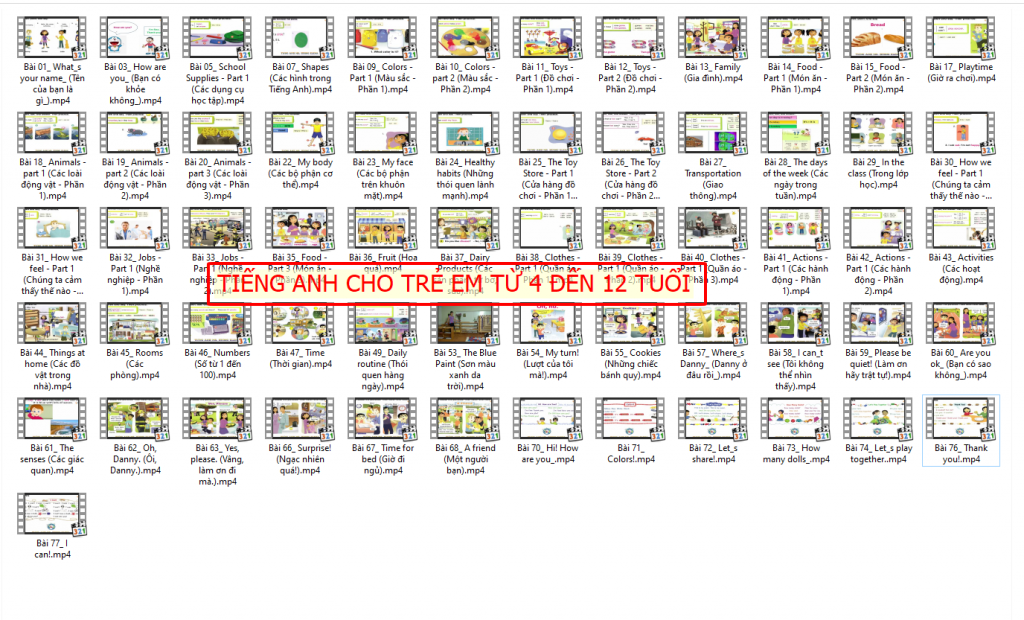 Bài hát và video là những phương pháp học tập rất thú vị và hiệu quả cho trẻ. Các bài hát tiếng Anh với giai điệu vui nhộn và từ vựng dễ nhớ giúp trẻ dễ dàng nắm bắt từ mới và phát triển kỹ năng nghe.