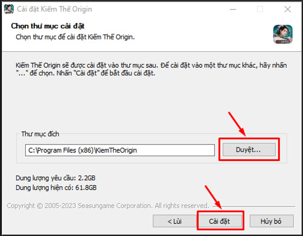 - Bước 4: Nhấn vào nút Duyệt… để chọn vị trí cài đặt, sau đó nhấn chọn Cài Đặt.