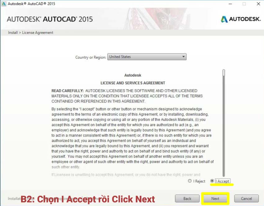 Bước 2: Chọn “I Accept” rồi click “Next”