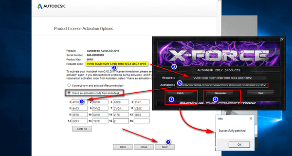 Bước 4: Tiếp theo bạn chạy file xf-adsk2017_64.exe hoặc xf-adsk2017_86.exe (tùy vào phiên bản bạn mà bạn cài đặt) ở thư mục Keygen với quyền Administrator để Active. Bạn làm theo thứ tự dưới đây nhé: