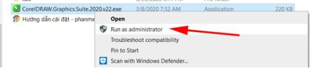 Bước 1: Mở thư mục giải nén, Tìm tới file CorelDrawGraphicsSuite2020.exe