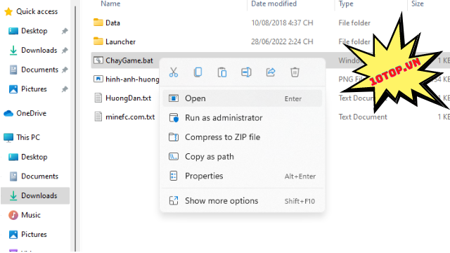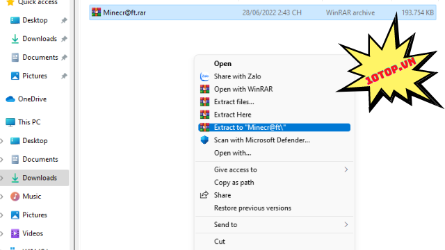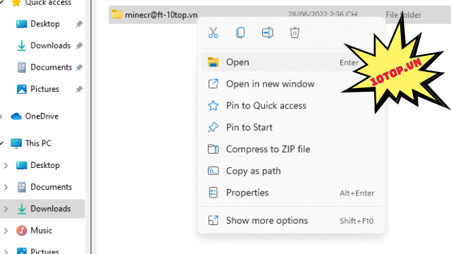Bước 2: Sau khi giải nén sẽ xuất hiện file “minecr@ft-10top.vn” =>mở file lên