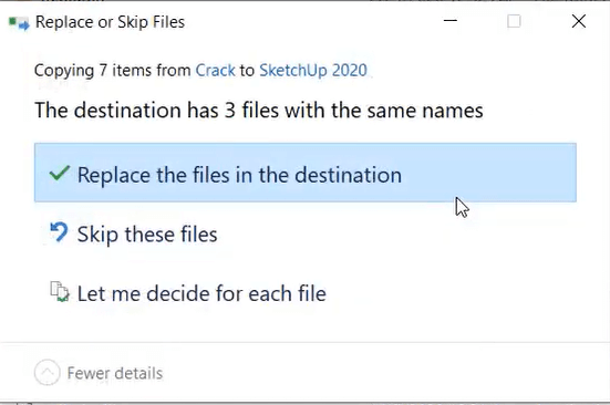 Giờ bạn chuyển sang bước Crack SketchUp Pro 2020 nhé. Vào thư mục Crack, sao chép 3 files như hình bên dưới vào thư mục cài đặt của phần mềm.